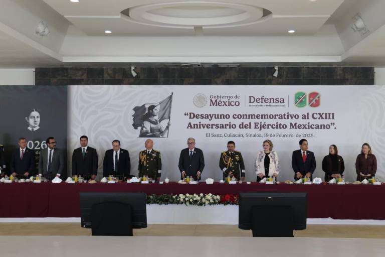 CULIACÁN. _ En las instalaciones de la Base Militar El Sauz se llevó a cabo la ceremonia conmemorativa por el 113 aniversario del Ejército Mexicano, evento al que asistió el gobernador Rubén Rocha Moya, así como autoridades civiles y mandos de las Fuerzas Armadas.