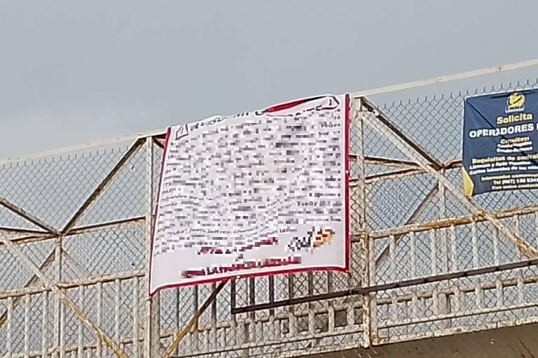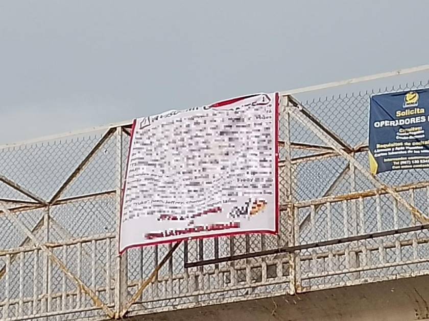 Finalmente, se reportó la presencia de una cuarta lona en un puente peatonal ubicado en la comunidad de Limón de los Ramos, a un costado de la carretera federal México 15.