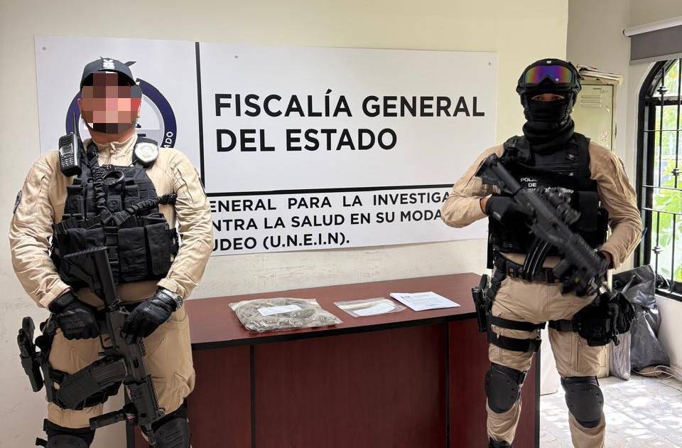 En el mismo municipio también se capturó a Christian “N”, de 20 años, en la colonia Sánchez Celis. El joven fue localizado en posesión de cuatro bolsas con cocaína, 224 bolsas y nueve cigarros de marihuana, además de cuatro paquetes de barras de chocolate, una bolsa con frituras y otra de gomitas, todas elaboradas de la droga antes mencionada.