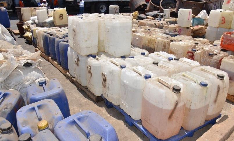 Decomisan 5 mil 450 litros de precursores químicos en Sinaloa