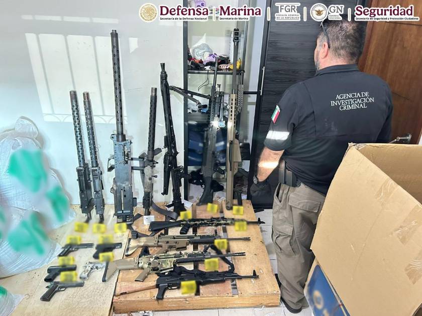 CULIACÁN. _ Elementos de la Agencia de Investigación Criminal (AIC) de la Fiscalía General de la República (FGR) y de la Secretaría de la Defensa Nacional (Sedena) aseguraron un arsenal, drogas y equipo táctico durante un cateo realizado en un inmueble del fraccionamiento Urbivilla del Cedro, en Culiacán.
