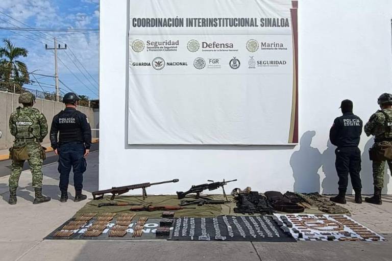 Al examinar la zona, se localizó armamento, municiones y equipo táctico diverso.