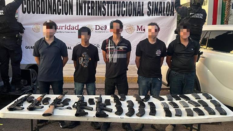 En los municipios de Badiraguato y Ahome decomisaron 14 armas, 31 cartuchos, cinco cargadores,113 kilos 900 gramos de mariguana, cuatro vehículos y 520 litros de gas avión.