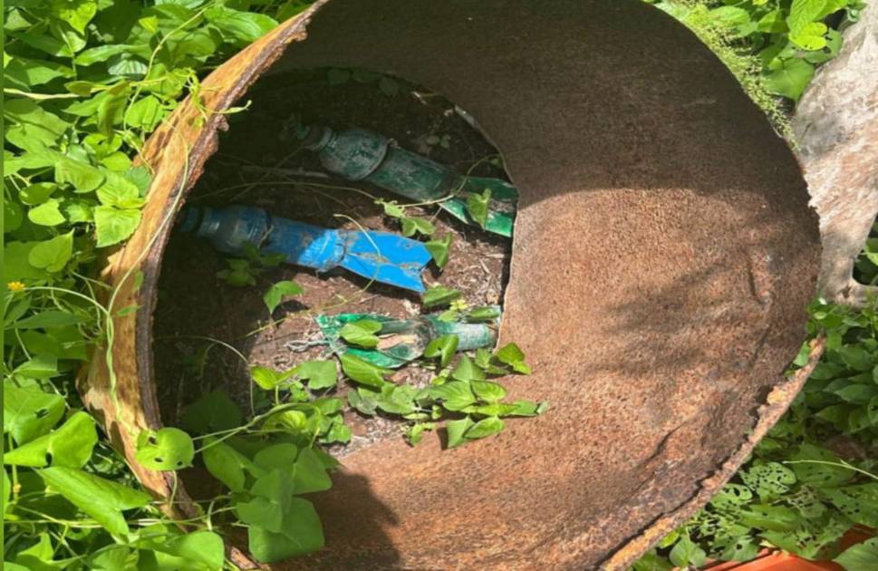 Durante operativos de reconocimiento terrestre en la comunidad Loma Grande, en Escuinapa, el personal militar encontró tres artefactos explosivos improvisados.