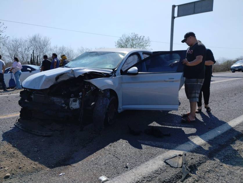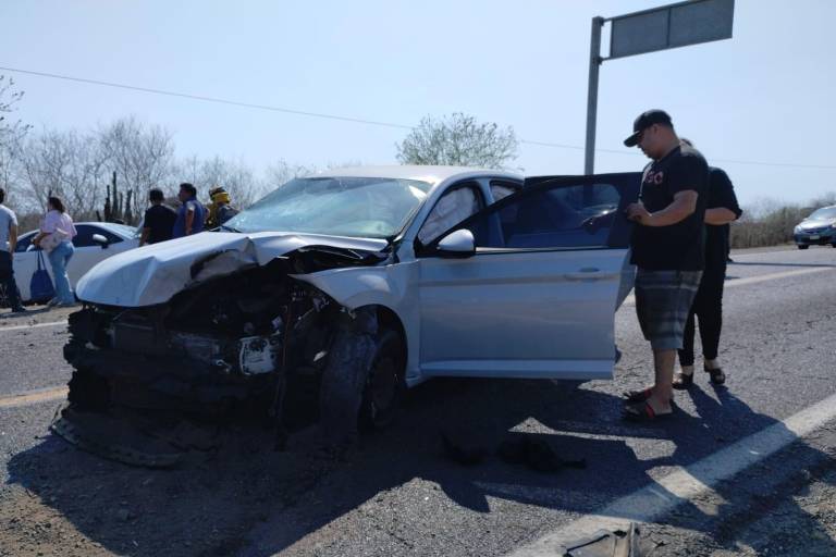 MAZATLÁN._ Un aparatoso choque de frente entre dos autos dejó como saldo seis personas con lesiones de consideración, que fueron trasladadas en ambulancias de diferentes corporaciones de auxilio.