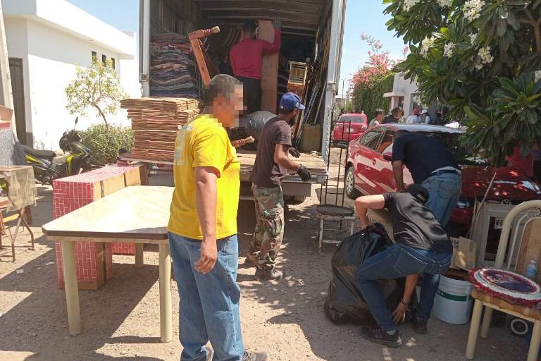 Las familias fueron sacando sus cosas para colocarlas en las unidades de mudanza.
