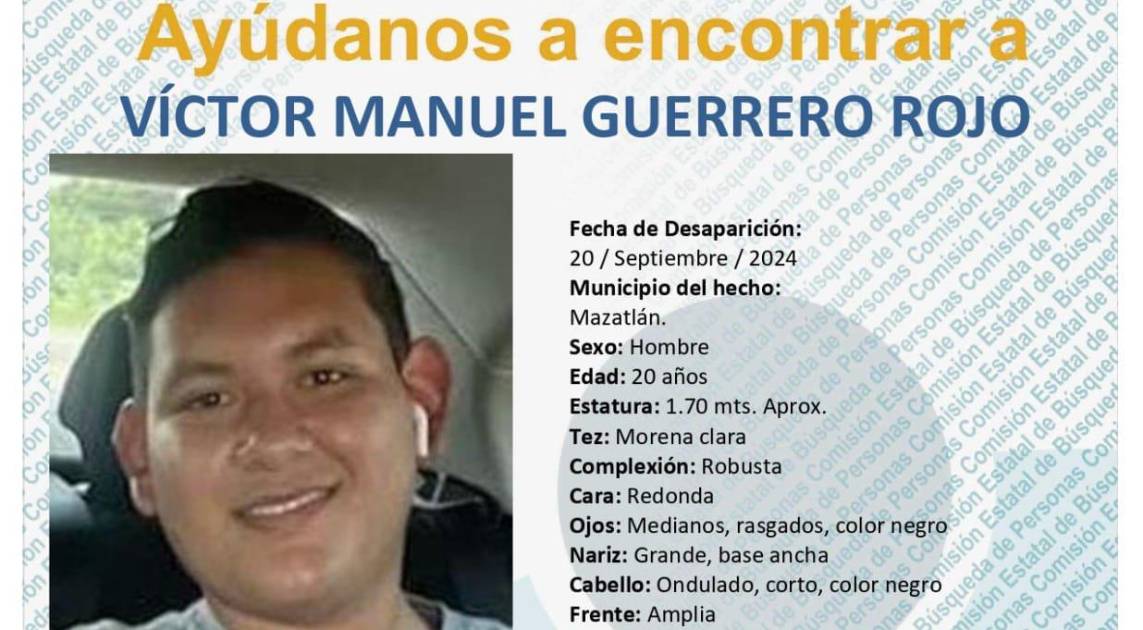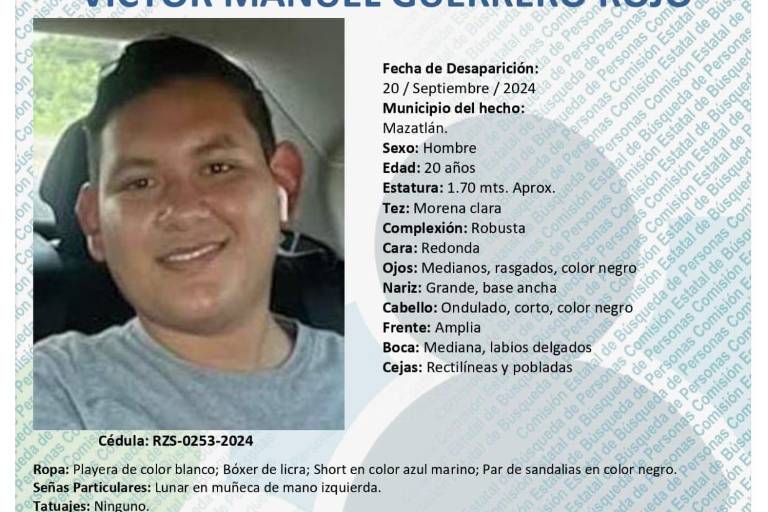 MAZATLÁN._ Desde hace 15 días, Víctor Manuel Guerrero Rojo se encuentra en calidad de desaparecido en Mazatlán.