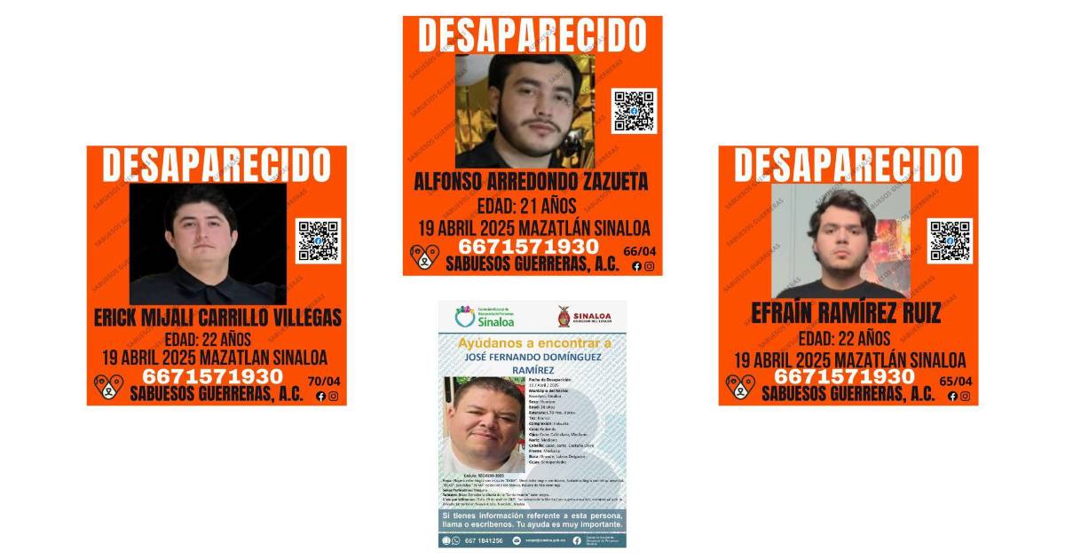 De las personas desaparecidas, una desapareció al salir de una privada en Nuevo Altata, Navolato. Se trata de un hombre de 38 años de edad. Las otras tres desaparecieron en Mazatlán.