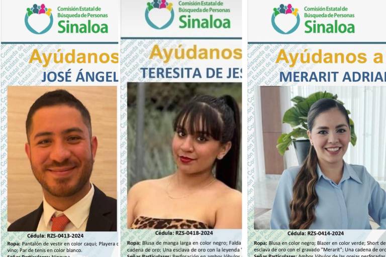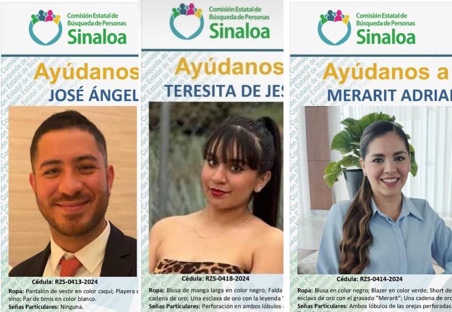 La Comisión Estatal de Búsqueda de Personas en el Estado de Sinaloa emitió las Cédulas RZS-0418-2024, RZS-0413-2024 y RZS-0414-2024 por estas tres desapariciones.