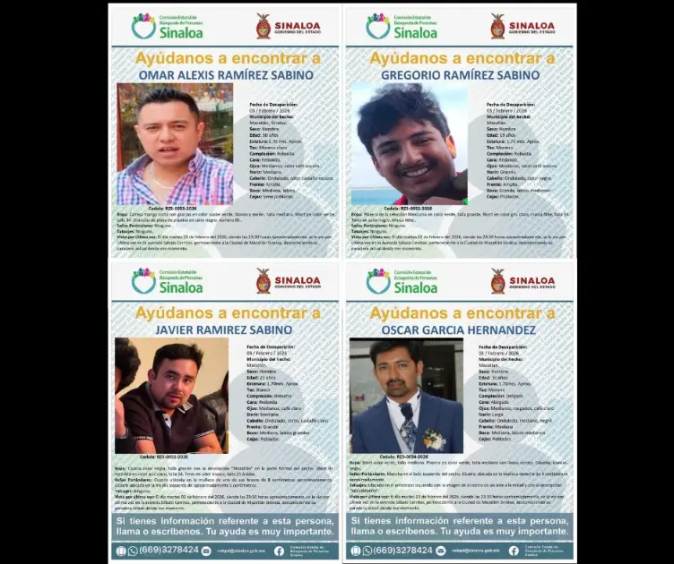 Pese a que la Fiscalía General del Estado de Sinaloa mantiene abiertas las carpetas de investigación y ha emitido las fichas de búsqueda correspondientes, la comunicación con los familiares ha sido limitada. Allegados de Óscar García expresaron recientemente a Noroeste que, aunque existe contacto formal con las autoridades, desconocen los detalles técnicos de los operativos desplegados.