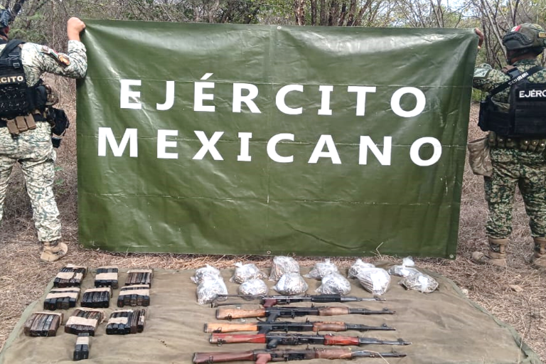 En un operativo realizado en el poblado de Casas Viejas, personal del Ejército Mexicano localizó y desmanteló un campamento presuntamente utilizado por grupos delictivos. Durante la intervención, los efectivos federales aseguraron seis armas largas, 27 cargadores y 540 cartuchos útiles.