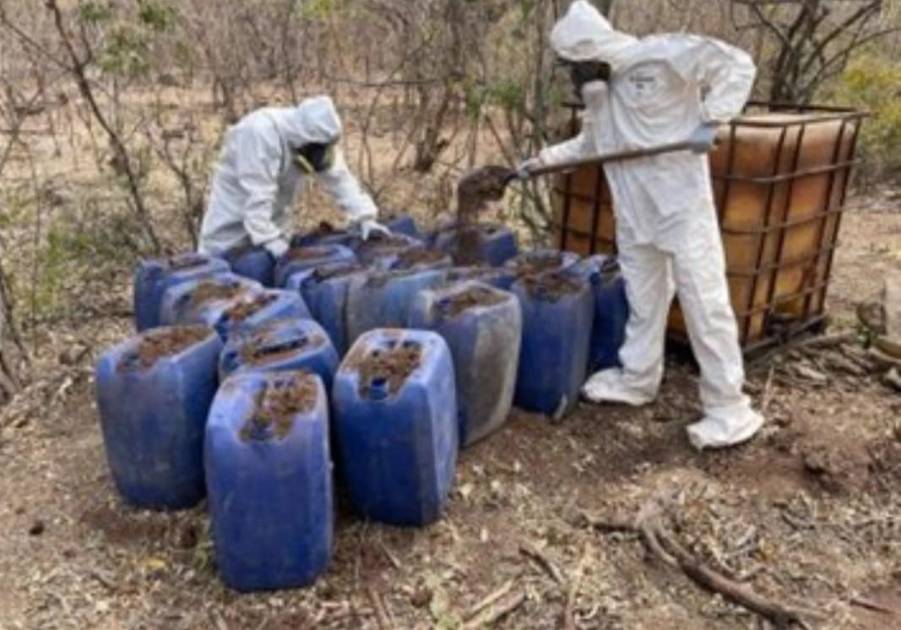En operativos de reconocimiento realizados en los municipios de Culiacán y Cosalá, las autoridades localizaron asentamientos clandestinos con diversas sustancias químicas y equipos como contenedores, bidones, tambos, costales, tinas, condensadores y reactores.