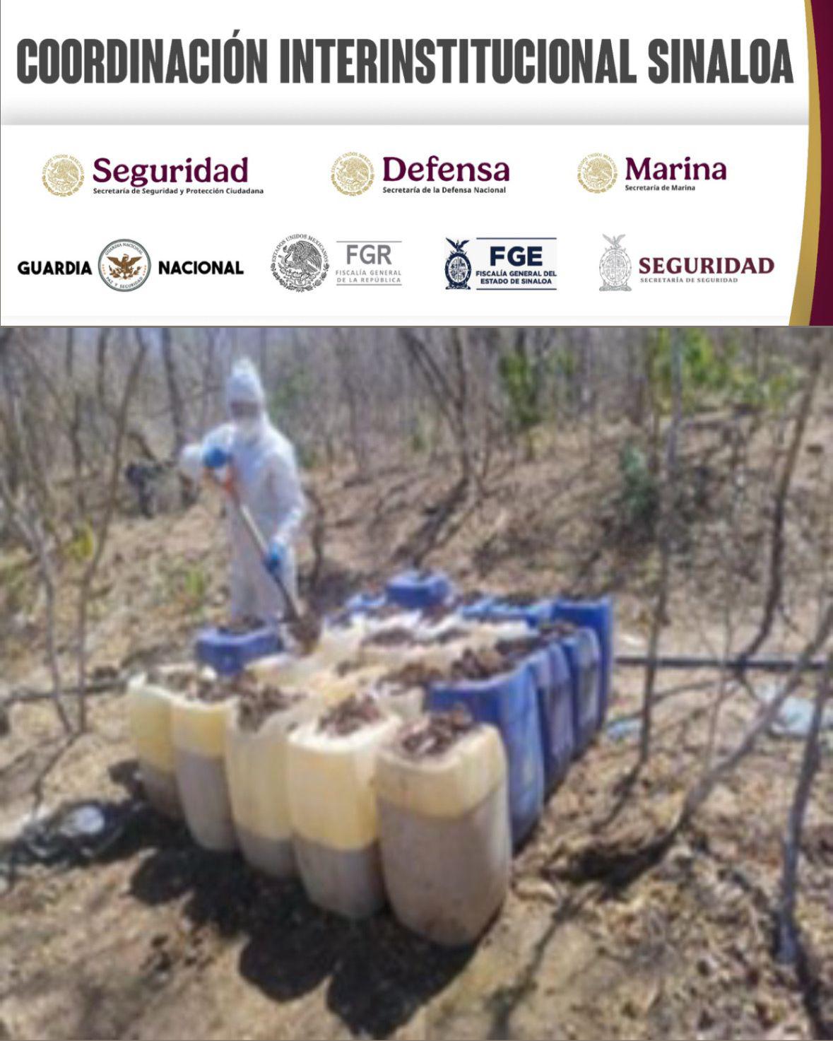 Un Grupo Interinstitucional aseguró y desmanteló nueve laboratorios para la creación de drogas en distintas comunidades de Culiacán y Cosalá.