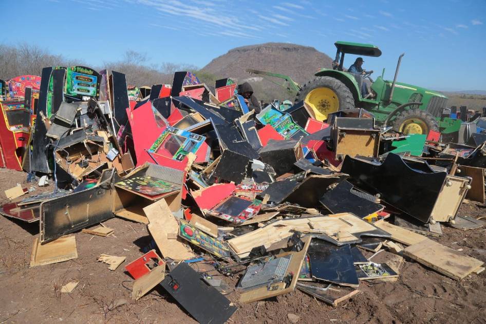 Destruye SSP 796 maquinitas, narcóticos y equipo táctico decomisado en operativos en Sinaloa