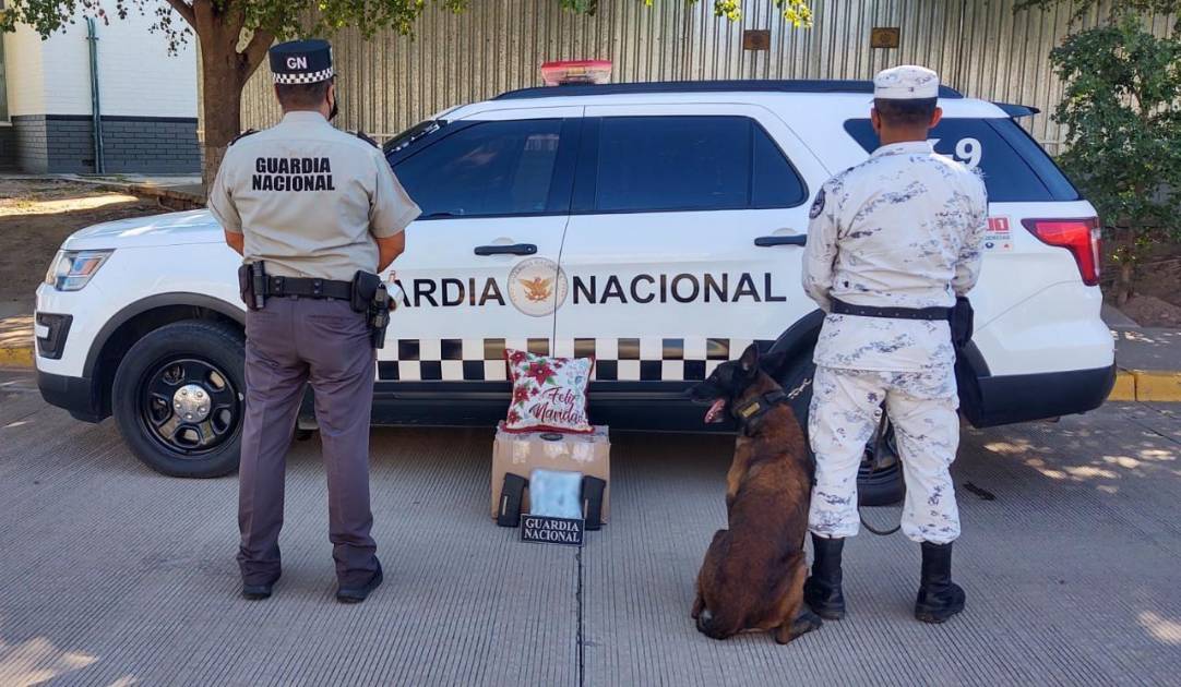 Dos cargadores para arma tipo fusil de asalto y un paquete con aparente marihuana fueron detectados por ejemplares caninos de la Guardia Nacional (GN) en una empresa de mensajería y paquetería en Culiacán, Sinaloa.