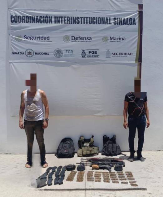CULIACÁN. _ Elementos de la Secretaría de Marina Armada de México, detuvieron a dos hombres y aseguraron armas, cargadores y municiones derivado de despliegues operativos realizados en la capital sinaloense.
