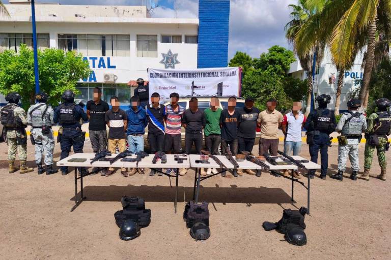 NAVOLATO. _ Once personas fueron detenidas por el Grupo de Operaciones Especiales (GOES) de la Policía Estatal Preventiva en Navolato, tras recibir una denuncia anónima sobre la presencia de hombres armados en el campo San Luis.