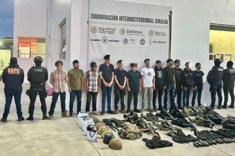 Además de los 12 civiles detenidos, las autoridades lograron asegurar cuatro armas largas tipo AR-15, ocho AK-47, tres armas cortas, seis cargadores para arma corta, 41 cargadores 5.56x45 mm, 54 cargadores 7.62x39 mm, tres discos metálicos para cartuchos 7.62x39 mm, cinco cofres metálicos para cartuchos de ametralladora y 12 cartuchos 9 mm.