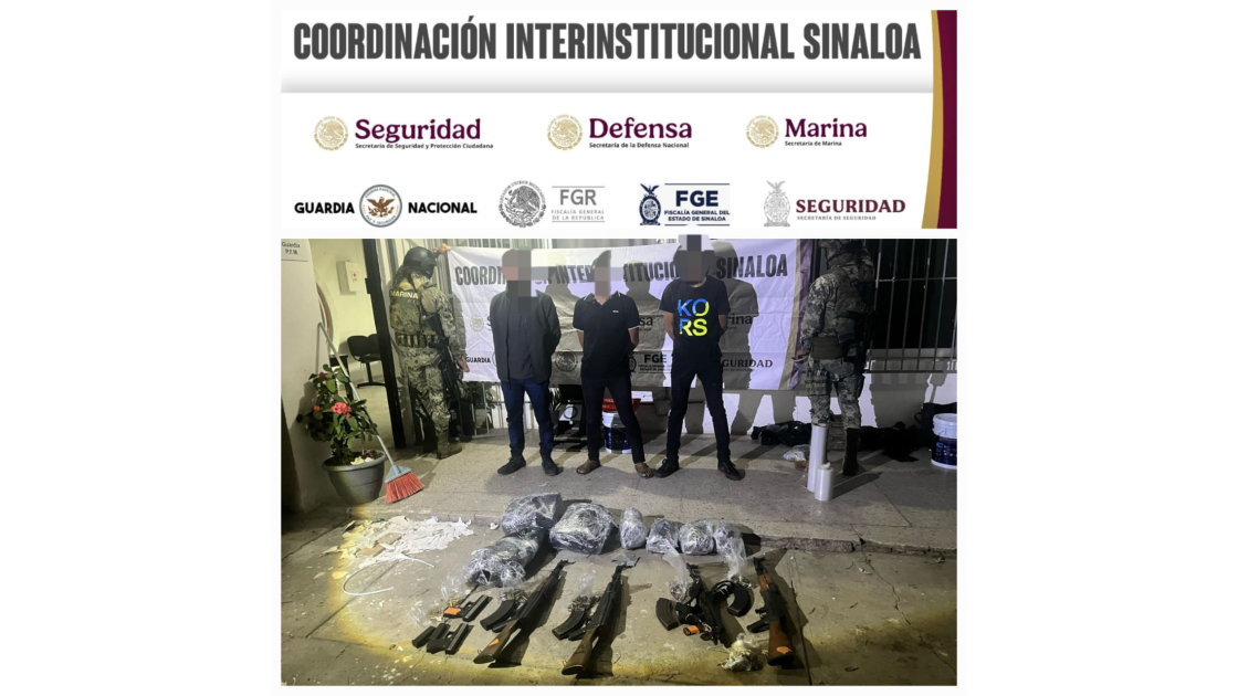 Tres civiles armados fueron detenidos por elementos de la Secretaría de Marina, en coordinación con el Grupo Institucional, y les aseguraron un vehículo, armas, municiones y equipo táctico en Mazatlán, la noche del lunes.