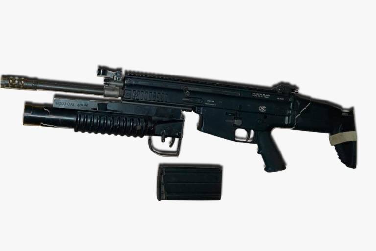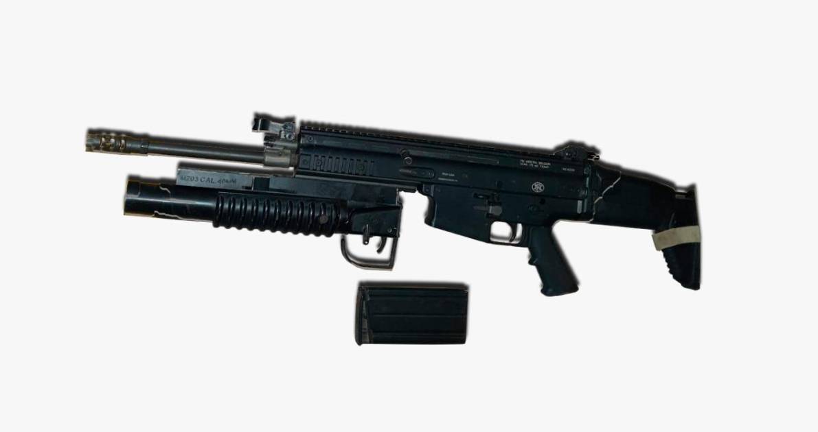 Dentro del despliegue que se realizó fueron encontrados aditamentos para lanzagranadas y equipo táctico, algunos con la insignia de La Marina.