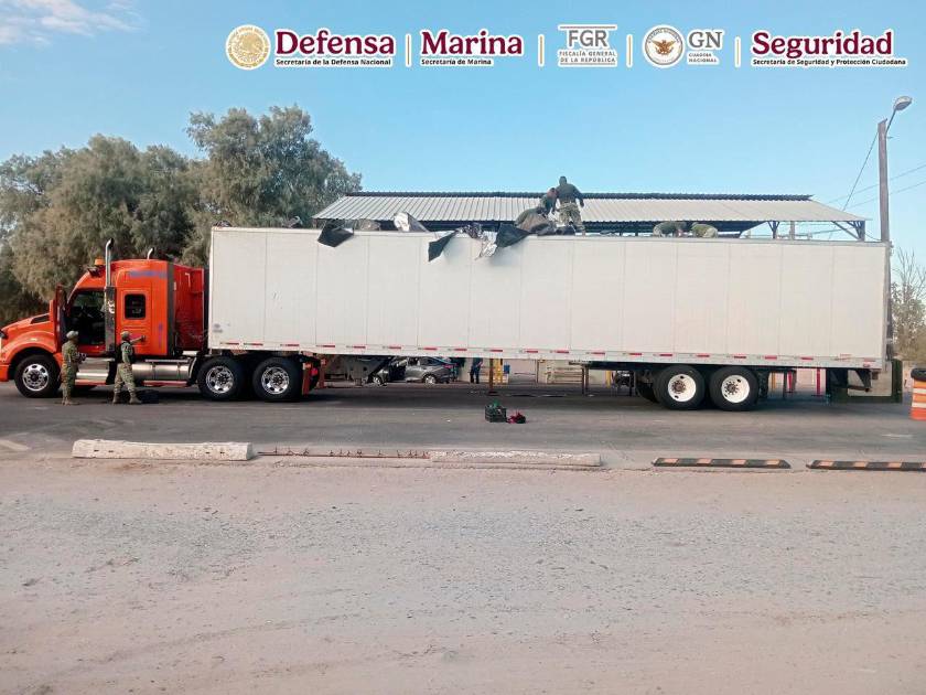 Detienen a conductor con mil 200 paquetes de cocaína ocultos en su tractocamión, en Sonora