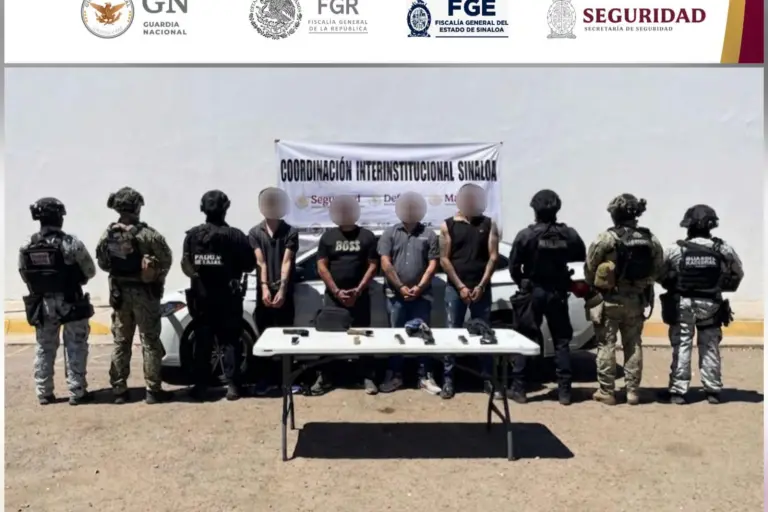 Autoridades federales y estatales detuvieron este domingo 19 de abril a cuatro civiles, uno de ellos menor de edad, en la ciudad de Culiacán, a quienes les aseguraron armas de fuego, cargadores, cartuchos y un vehículo con reporte de robo reciente.