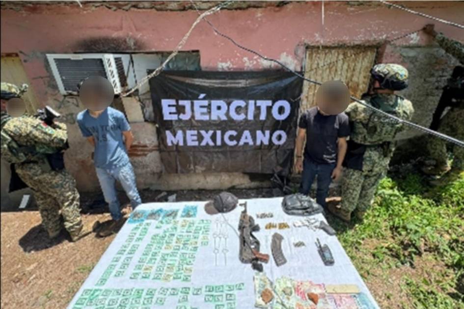 Según un comunicado de la Secretaría de Seguridad Pública estatal, personal militar se encontraba realizando recorridos de reconocimiento terrestre por las calles de la colonia en mención cuando se localizó a los dos sujetos sospechosos.