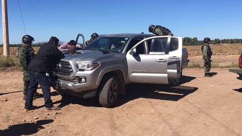 La detención ocurrió a las 14:00 horas tras un despliegue realizado por tierra y aire por elementos del Ejército, quienes ubicaron a los sospechos que iba en una camioneta Tacoma de color blanco.