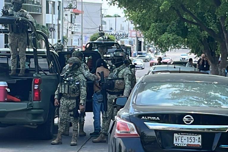 CULIACÁN. _ Dos hombres armados fueron detenidos la tarde de este lunes a un costado de Palacio de Gobierno, sobre la avenida Lázaro Cárdenas, en Culiacán, tras una persecución encabezada por elementos del Ejército Mexicano y la Policía Municipal.