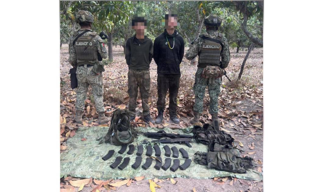 En las inmediaciones de la cabecera municipal, elementos del Ejército Mexicano detectaron a los dos sujetos, quienes intentaron huir