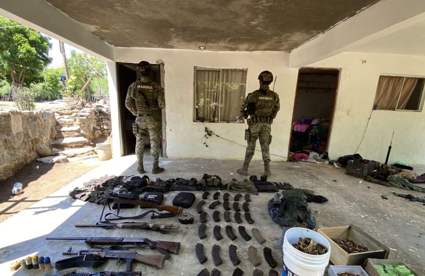 Durante patrullajes terrestres en las inmediaciones del poblado San Juan de Jacobo, personal de la Semar, con apoyo de aeronaves, logró el aseguramiento de dos civiles. En el mismo sitio fue localizado un vehículo robado, así como seis armas largas, un tubo lanzagranadas, siete granadas de 40 mm, y seis artefactos explosivos improvisados, los cuales fueron neutralizados por personal especializado.
