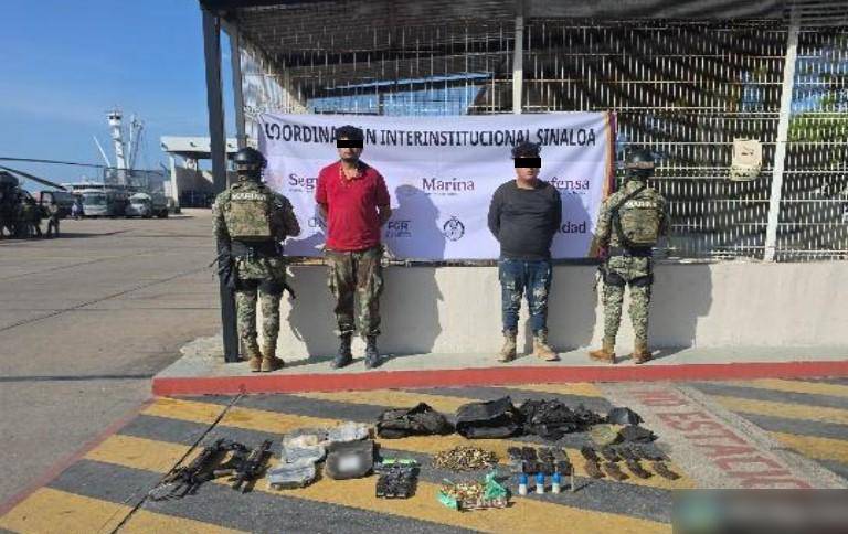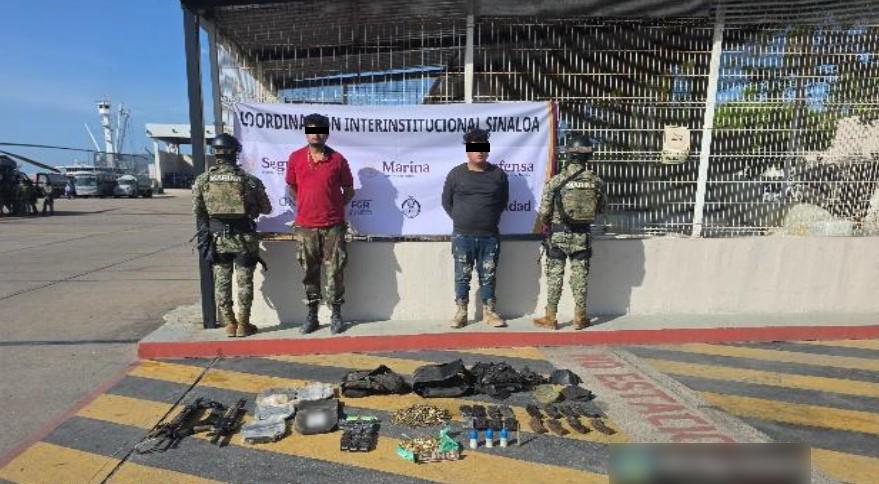 CONCORDIA. _ Elementos de la Secretaría de Marina (Semar) y del Ejército Mexicano desplegaron un operativo conjunto en el municipio de Concordia, donde lograron la detención de dos personas y el aseguramiento de armas de fuego, municiones, equipo táctico, explosivos improvisados y un vehículo con reporte de robo, en diferentes acciones coordinadas.