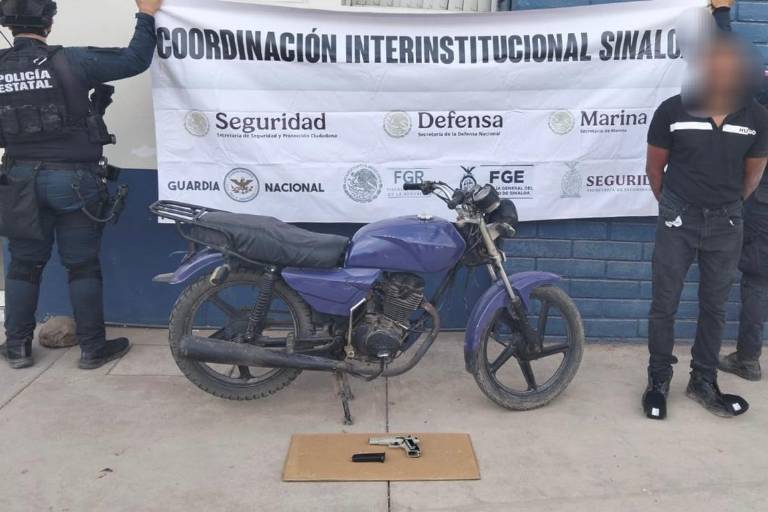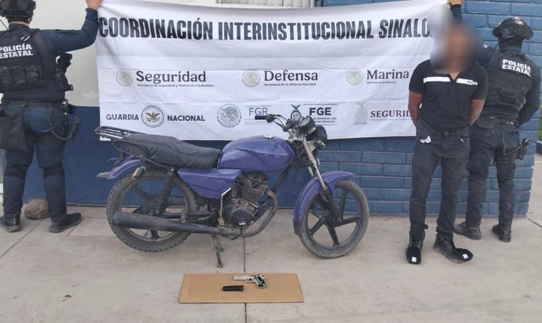 CULIACÁN._ Un hombre armado que se trasladaba en motocicleta fue detenido por elementos de la Policía Estatal Preventiva, en coordinación con el Ejército Mexicano y la Guardia Nacional, luego de un enfrentamiento entre civiles armados registrado la mañana de este viernes 25 de abril en las inmediaciones de Campo Victoria, en la sindicatura de Villa Juárez, Navolato.