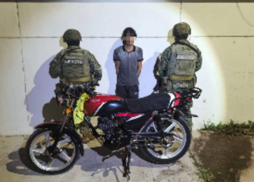 CULIACÁN. _ Un hombre fue detenido este jueves en la colonia Guadalupe Victoria de Culiacán por elementos del Ejército Mexicano, luego de no acreditar la legal procedencia de la motocicleta en la que se desplazaba.