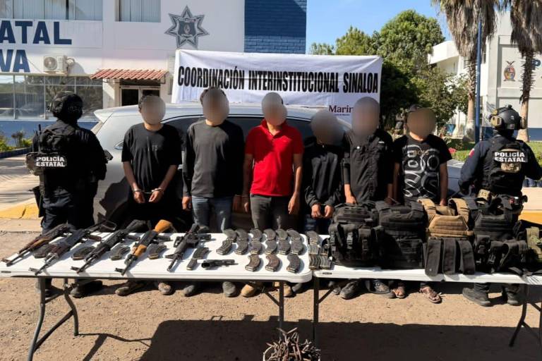 En un operativo coordinado, elementos de seguridad estatales y federales detuvieron a seis civiles armados, entre ellos un menor de edad, y aseguraron armamento, municiones, equipo táctico y un vehículo con reporte de robo en el municipio de Navolato.
