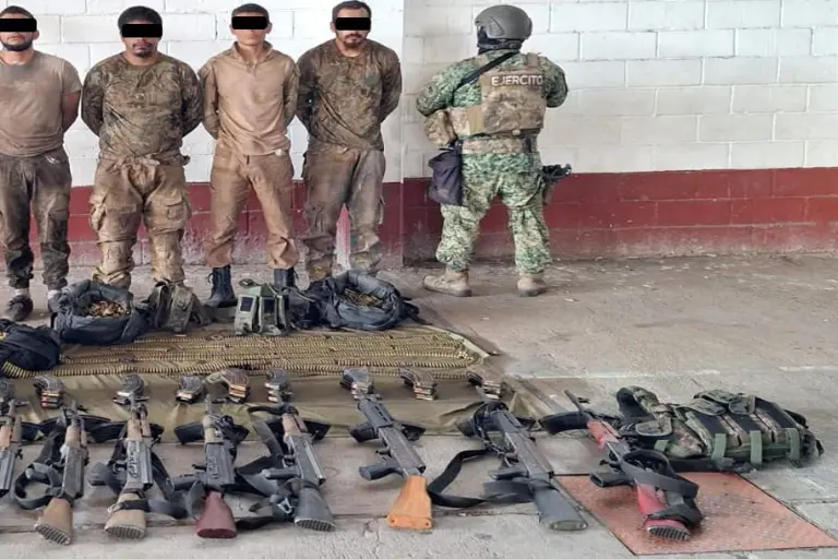 De acuerdo con los datos oficiales, en la cabecera municipal fueron detenidas cuatro personas, a quienes se les aseguraron 10 armas largas, 30 cargadores, 6 mil 800 cartuchos y cuatro chalecos tácticos.