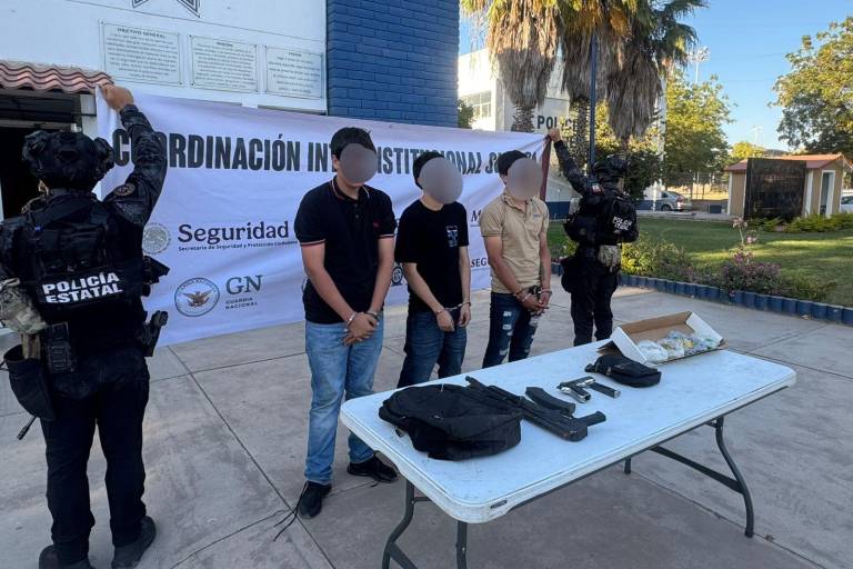 Tres hombres armados y presuntamente dedicados a la venta de drogas fueron detenidos por elementos de la Policía Estatal Preventiva de Sinaloa en el fraccionamiento Los Ángeles, en Culiacán.
