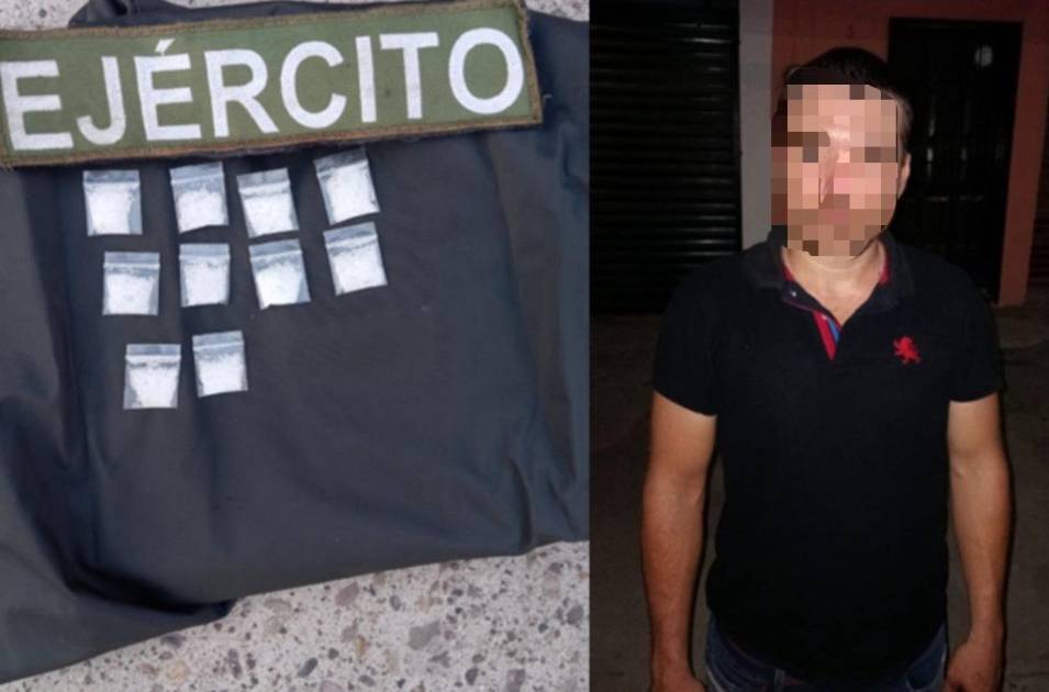 CULIACÁN._ Un civil en posesión de droga fue detenido por elementos del Ejército Mexicano en la colonia Centro de Culiacán. Al capturado se le fue asegurado una decena de dosis de presunto cristal.