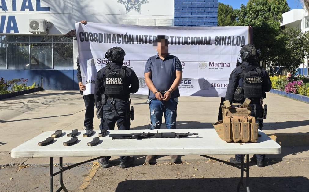 Detienen a un hombre con arma larga y equipo táctico en Costa Rica, Culiacán