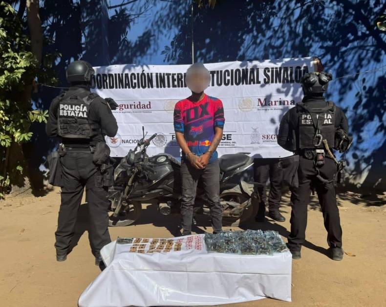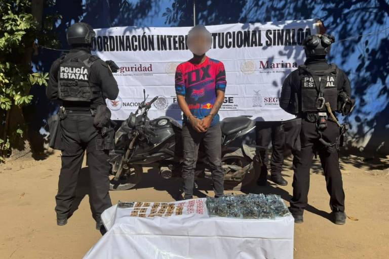 Le dieron alcance, corroboraron que la motocicleta tenía reporte de robo y le decomisaron 30 bolsas con 336 gramos de supuesta marihuana; 120 bolsas con aproximadamente de 51 gramos de presunta metanfetamina; y 14 bolsas con 8 gramos de presunta cocaína.