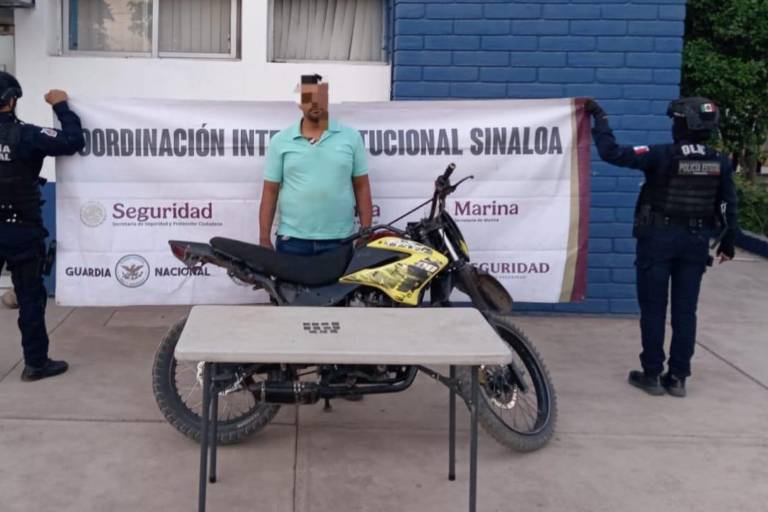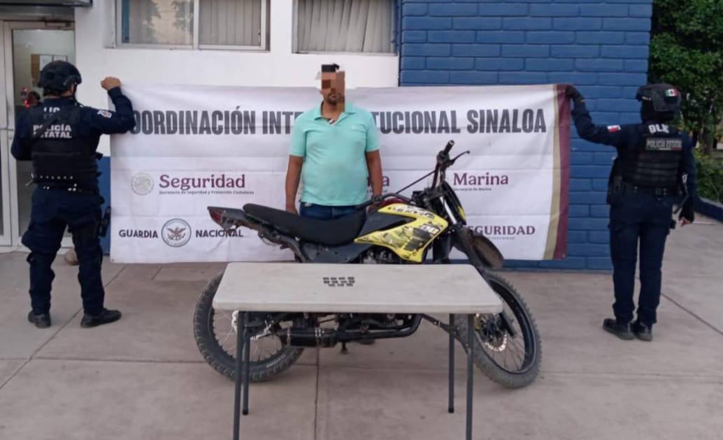 Un hombre a bordo de una motocicleta fue arrestado por elementos policiales, al ser hallado con dosis de presunta droga en Campo El Diez, al sur de Culiacán.