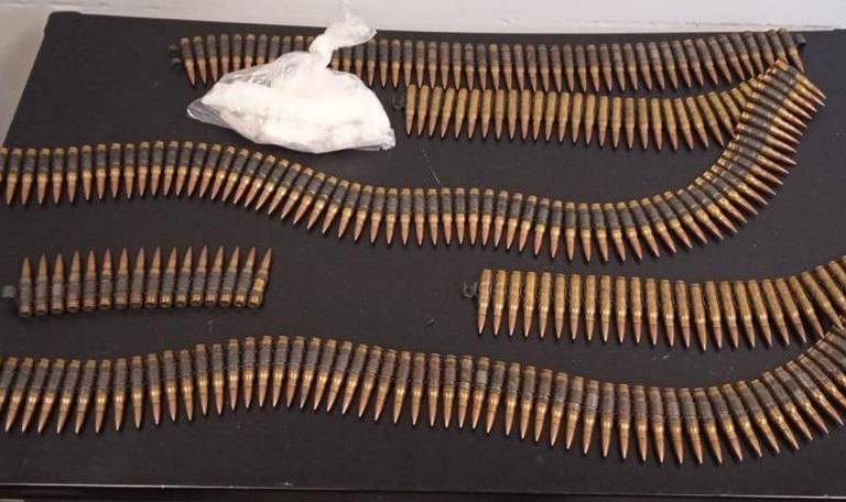 Al encontrarse a una distancia pertinente, los elementos preventivos notaron a simple vista que, de la bolsa plástica negra que arrojó el civil salía una cinta con cartuchos para arma larga.