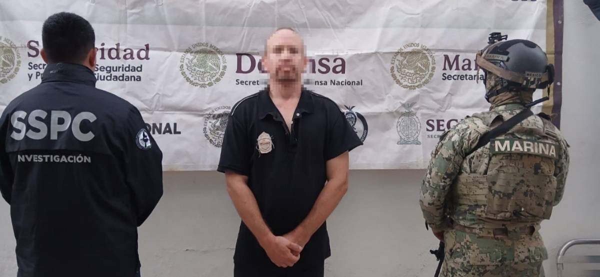 Derivado de trabajos de campo y gabinete, y como resultado de la coordinación interinstitucional, personal naval logró la detención de Óscar “N” en cumplimiento de una orden de arresto federal vigente emitida por autoridades judiciales de Estados Unidos, por su presunta responsabilidad en los delitos de secuestro, agresión agravada, conducta desordenada, posesión de arma, despojo ilegal de propiedad y violencia doméstica.