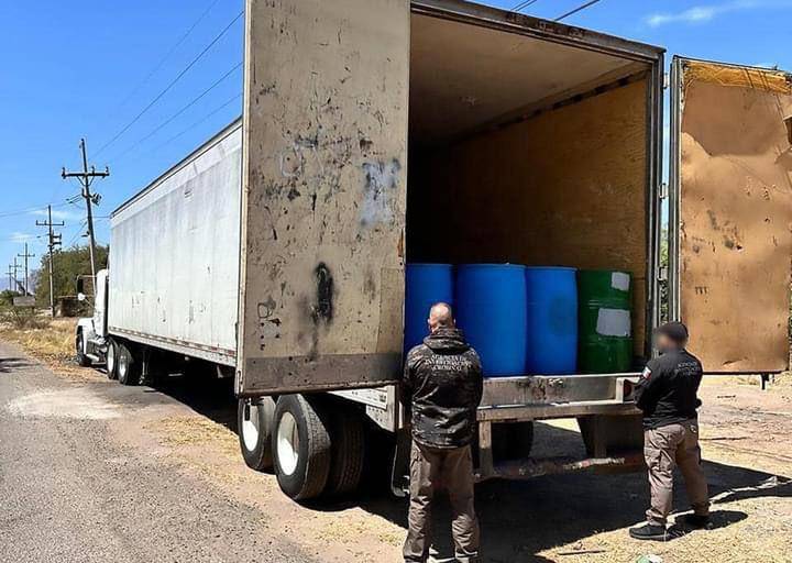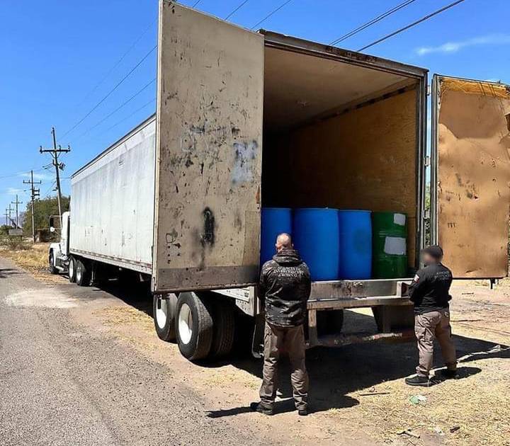 Un tráiler que transportaba sustancias químicas para la fabricación de droga fue detenido en la caseta de Costa Rica, en Culiacán, cuando pretendía viajar hacia el norte del estado.