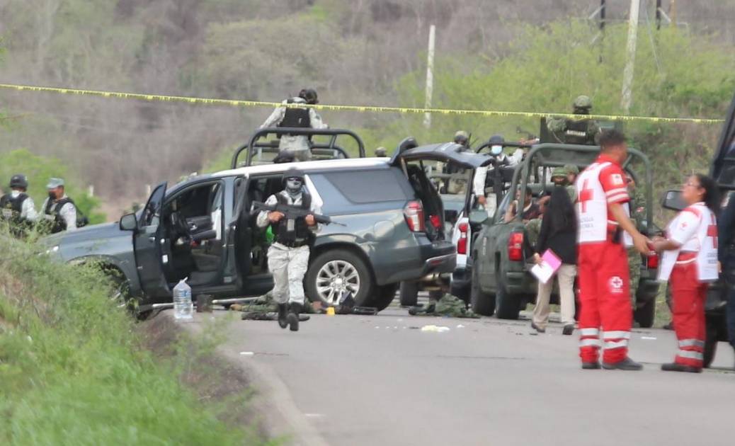 En el enfrentamiento en este lugar fallecieron dos presuntos integrantes del grupo delictivo y dos más fueron detenidos. Varias ambulancias y unidades de las diferentes instituciones de las fuerzas armadas y policiales llegaron al lugar.