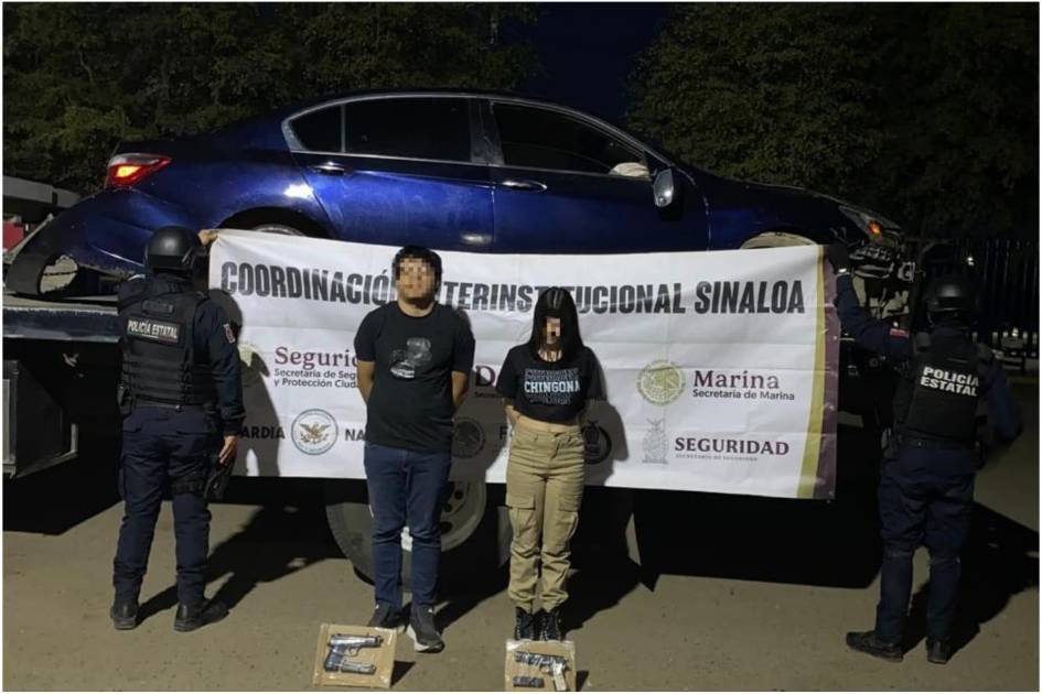 Ante ello, los elementos les dieron seguimiento, y posteriormente, calles más adelante, ubicaron el vehículo impactado y detuvieron a un masculino y una femenina quienes portaban dos armas cortas. Además, al revisar el estatus de la unidad motriz en el registro correspondiente, este arrojó que cuenta con reporte de robo en Estados Unidos de Norteamérica, quedando asegurados dos civiles, dos pistolas y un vehículo con reporte de robo.