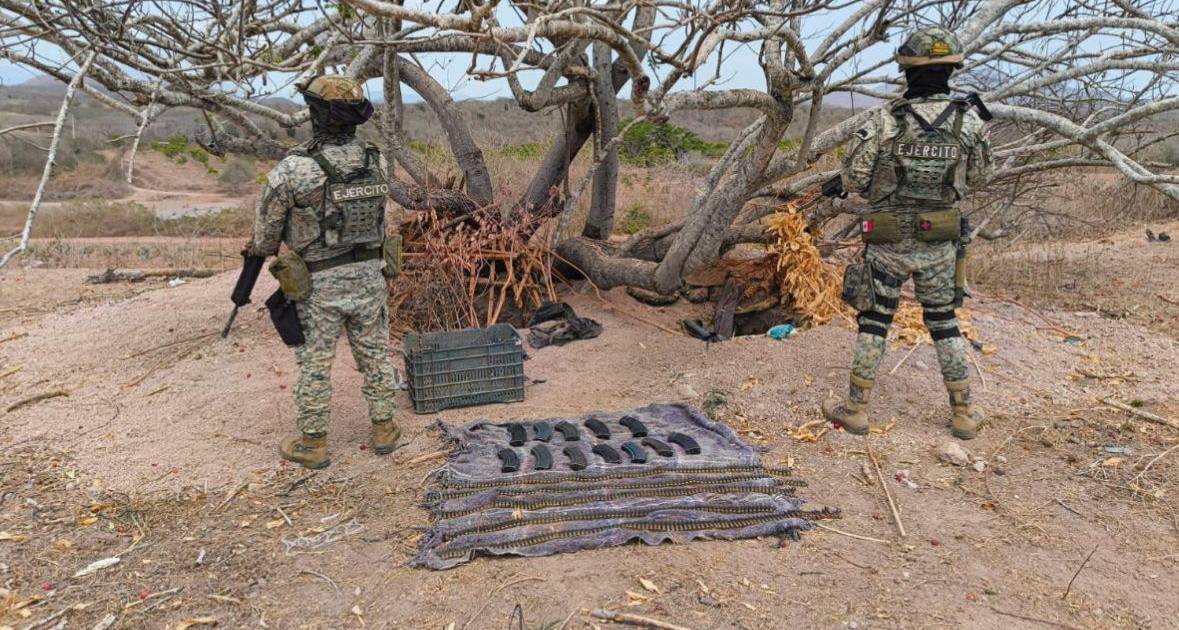 El aseguramiento derivó de operativos de recorridos terrestres para la inhibición de delitos en el poblado Cacalotán, los efectivos militares aseguraron un fusil Barret, 13 cargadores y 847 cartuchos.