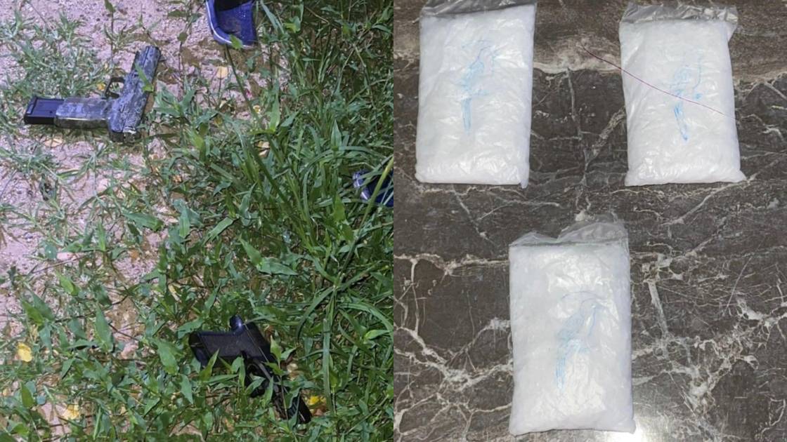 Según el informe oficial, los militares localizaron dos armas cortas, un cargador, 186 cartuchos útiles y tres envoltorios que contenían una sustancia con características similares a la metanfetamina.