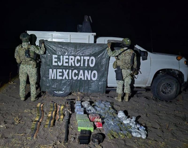 Tras repeler la agresión, los elementos castrenses aseguraron un vehículo con blindaje de fábrica; tres armas largas, entre ellas un fusil Barrett calibre .50; 26 cargadores y varios cartuchos útiles.