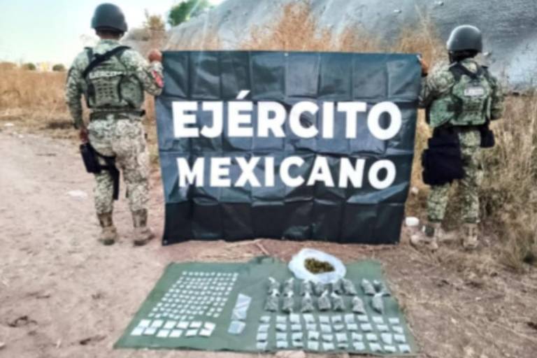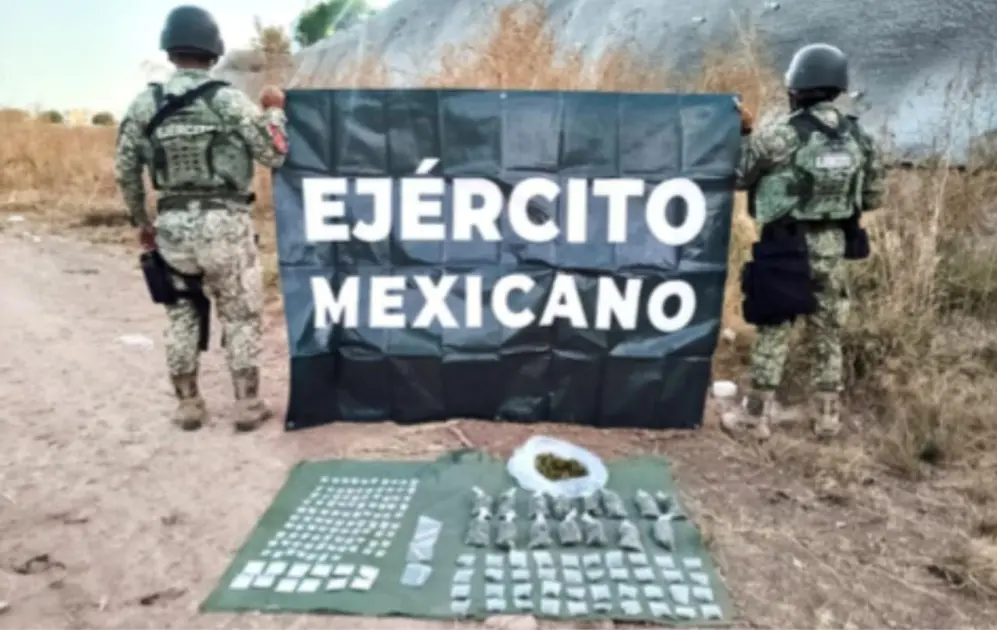 De acuerdo con la información oficial, el aseguramiento se llevó a cabo mientras el personal militar realizaba labores de reconocimiento en la zona, donde fueron localizadas 97 dosis de cristal, 12 dosis de cocaína, 40 dosis de marihuana, además de 380 gramos y cinco cigarros de la misma hierba.